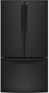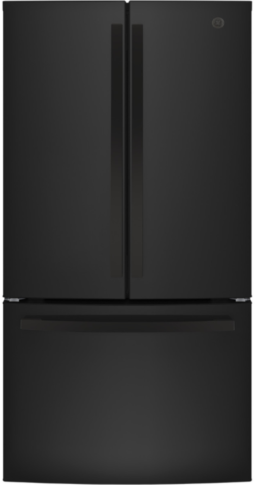 GE Series 33-inch 24.7 cubic foot black French door refrigerator offers spacious storage and efficient cooling. The French door design allows easy access to fresh foods, while adjustable shelves and compartments help keep items organized for everyday convenience and reliable performance in kitchens.Read More